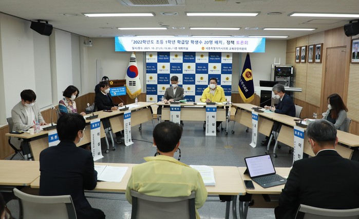 [세종=세계타임즈 이채봉 기자] 세종시의회(의장 이태환) 교육안전위원회(위원장 박성수) 주관으로 ‘2022학년도 초등 1학년 학급당 학생 수 20명 배치에 대한 토론회’가 27일 대회의실에서 열렸다.