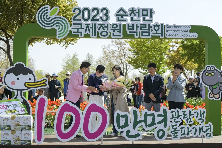 100만 번째 입장객을 축하하는 자리에서 노관규 순천시장은 "정원박람회를 사랑해 주셔서 감사하고 모든 분들을 진심으로 환영한다"며 "더 큰 이벤트로 보답하겠다"고 환영했다.