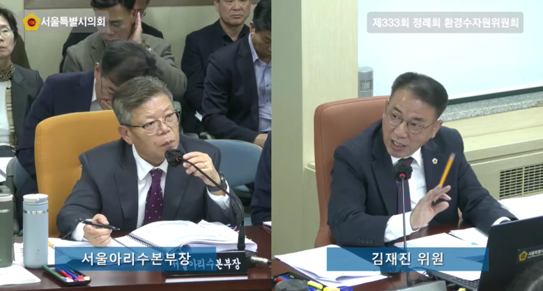 [서울 세계타임즈=이장성 기자] 서울특별시의회 환경수자원위원회 김재진 위원(국민의힘, 영등포1)은 10일 열린 서울아리수본부 행정사무감사에서 시민 대상 아리수 무료 수질검사인 ‘품질확인제’의 신청률 저조와 접근성 문제를 지적하며, 시민 참여 확대를 위한 적극적인 홍보와 제도 개선을 촉구하였다.