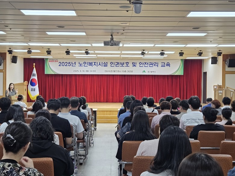 ▸ 시설 내 어르신 안전과 권익 보호 강화를 위한 실무 중심 교육 [세계타임즈=대구 한윤석 기자] 대구광역시는 9월 16일(화) 오후 2시, 시청 동인청사 10층 대강당에서 ‘2025년 노인복지시설 종사자 인권보호 및 안전관리 교육’을 성황리에 개최했다.