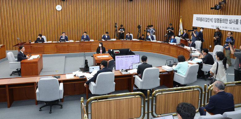[세계타임즈 = 신상철 기자] 김민석 국무총리 후보자가 24일 서울 여의도 국회에서 열린 인사청문회에서 질의에 답변하고 있다. 2025.6.24