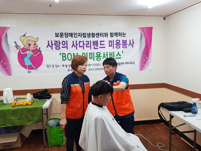 이미순 미용봉사 부단장(가오동 미소헤어 원장)은 “미용봉사 후 깔끔해진 장애인분들의 모습에서 행복과 보람을 느낀다.”고 말했다.