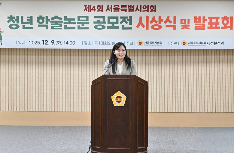 - 최 의장, “많은 관심과 참여 감사…청년들을 위한 서울 만드는 데 최선 다할 것” [서울 세계타임즈=이장성 기자] 서울특별시의회(최호정 의장)는 9일(화)『제4회 서울특별시의회 청년 학술논문 공모전』시상식 및 발표회를 개최했다.