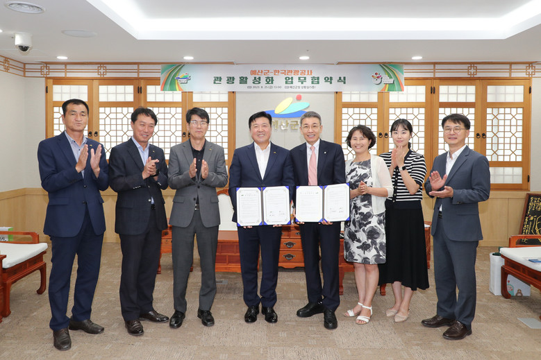 [세계타임즈 = 이현진 기자] 한국관광공사(이하 공사)와 예산군은 8월 25일 예산군청에서 지역관광 콘텐츠 개발 및 홍보를 위한 업무협약을 체결했다.