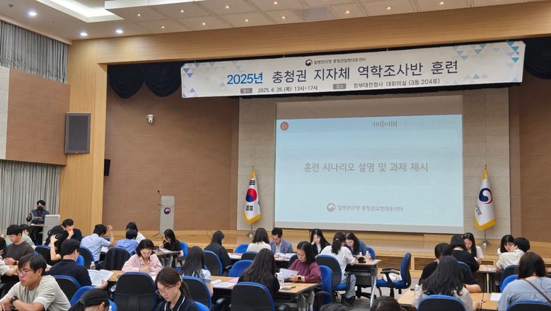 도는 26일 정부대전청사에서 충청권질병대응센터 주관으로 지자체 역학조사반원 80여 명이 참여한 ‘2025 충청권역(충남·대전·세종·충북) 지자체 역학조사반 훈련’을 실시했다고 밝혔다.