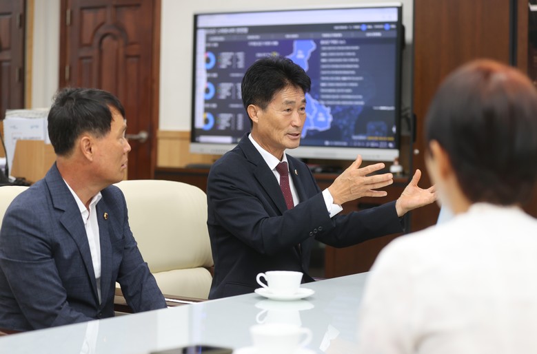 이 의장은 18일 첫 방문지로 음성군을 찾아 조병옥 군수와 김영호 군의장 등을 예방해 현안을 청취하고 도의회와의 교류 협력 방안을 논의했다.