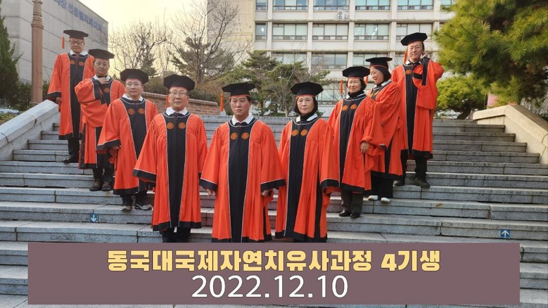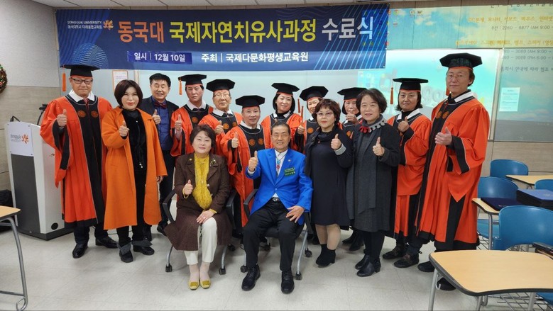[세계타임즈 백진욱 기자] 12월 10일 오전 10시 동국대 국제자연치유사과정 1기 17명, 2기 14명, 3기 19명, 4기 9명 62명은 내 몸을 치유하고 가족의 건강까지 책임지는 건강 프로그램 동국대 국제자연치유사 과정 4기 수료식이 있었다.
