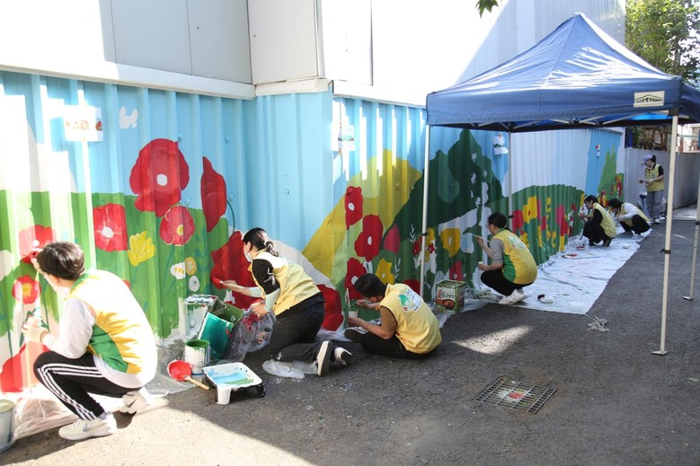 11일 신천지자원봉사단 동작지부(지부장 곽종렬)가 금천구 시흥 1동에 있는 볕바라기 주간보호센터에서 '제 10회 담벼락 이야기' 봉사를 진행했다.