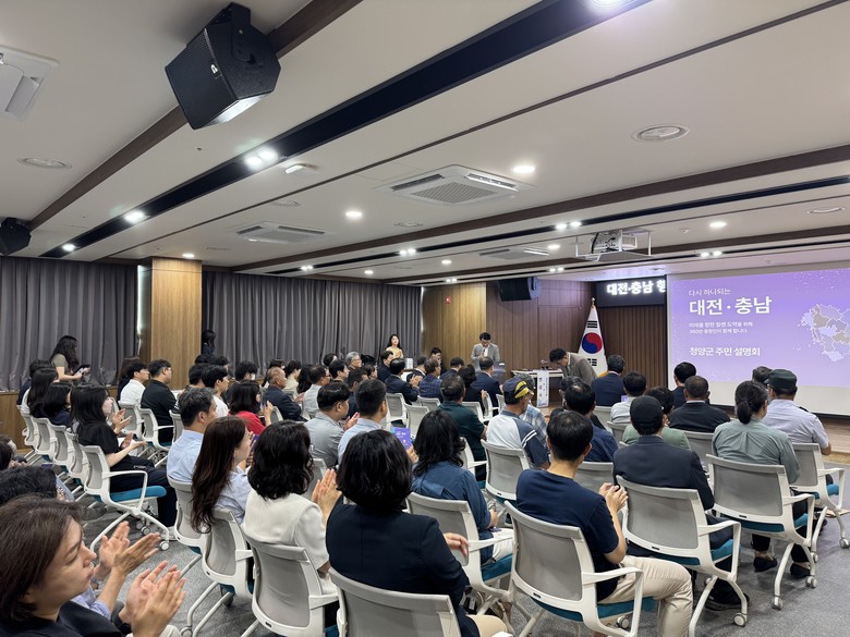대전·충남 행정통합 당위성을 도민과 공유하고, 공감대 확산을 위해 마련한 이날 설명회에는 김돈곤 청양군수와 민관협의체 이창기 공동위원장(대전), 양경모 소통분과위원장(도의회 의원), 지역 주민, 공무원 등 150여 명이 참석했다.