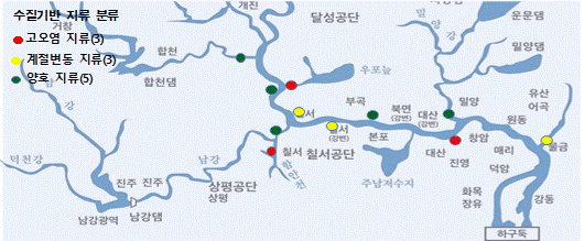 연구진은 수질 특성에 따라 낙동강 지류를 고오염 특성 지류, 계절 변동 특성 지류, 상대적 양호 지류 등 3개 유형으로 구분했다. 이 가운데 고오염 특성 지류 3곳은 유기물 및 영양염류 농도가 상대적으로 높았고, 상대적 양호 지류 5곳은 비교적 안정적인 수질 상태를 유지하는 것으로 나타났다.