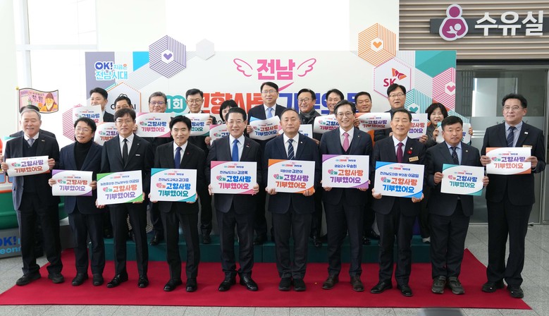 [전남 세계타임즈=우덕현 기자] 전라남도는 5일 도청 윤선도홀에서 고향사랑기부제 참여 확산 분위기 조성을 위해 제1회 고향사랑 기부의 달 특별 행사를 열어 이날 하루 총 3억 6천만 원을 모금하는 등 나눔 가치 확산 분위기를 조성했다.