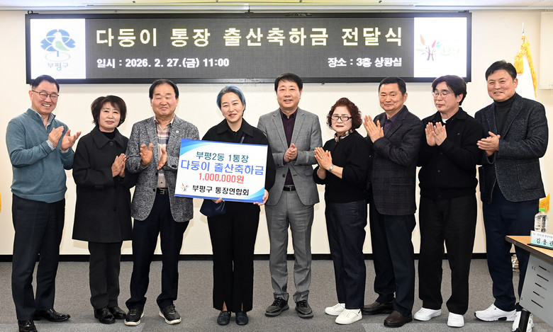 박영택 통장연합회 회장은 “부평구 주민이자 통장인 분이 다둥이를 출산했다는 기쁜 소식을 듣고 회원들이 한마음으로 축하의 뜻을 모았다”고 말했다.