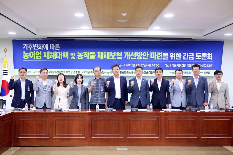 [세계타임즈 = 심귀영 기자] 지난 27 일 , 국회의원회관에서 더불어민주당 전국농어민위원회 위원장 이원택 의원 ( 전북 김제시 · 부안군 ) 은 민주당 농해수위 소속 의원들과 공동으로 ‘ 기후변화에 따른 농어업 재해대책 및 농작물 재해보험 개선방안 마련을 위한 긴급토론회 ’ 를 주최하였다 .