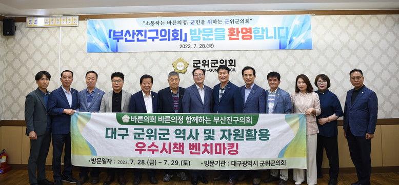 [군위군 세계타임즈=한성국 기자] 대구광역시 군위군의회(의장 박수현)는 지난 28일 군위군에 방문한 부산진구의회와 지역역사 및 자원활용 우수시책 연계협력 방안에 대하여 논의하며 의회 간 교류를 활성화하였다.