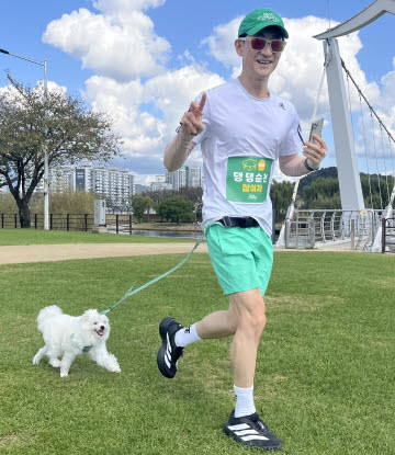 | ▲ 지난 10월 _2025 댕댕순천_ 참가자가 반려견과 함께 오천그린광장을 달리고 있다 |