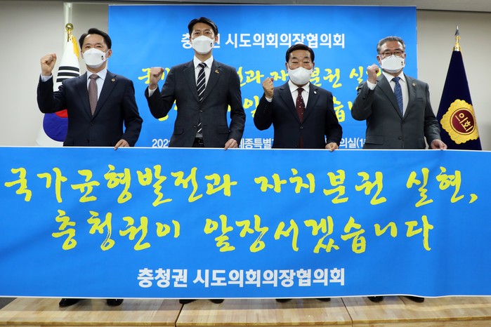 [세종=세계타임즈 이채봉 기자] 충청권 4개 광역시도의회 의장들이 지방자치법 전부개정 후속 조치 마련을 위한 공동 대응 등 자치분권 새 시대의 성공적 정착을 위해 손을 맞잡았다.