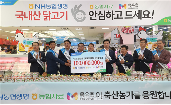 6월 19일오전 농협유통 양재점에서는 이번 상생마케팅 후원 기념식이 열렸다. 농협경제지주 김원석 대표와 NH농협생명 서기봉 사장, 농협사료 장춘환 대표, 목우촌 김용훈 대표는 닭고기의 안전성과 소비 확대를 홍보하고, 축산농가 돕기 동참을 호소했다.