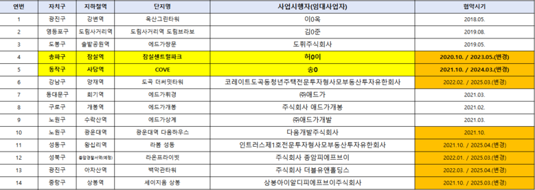 *잠실 센트레빌은 최초협약 2020년 5월, 변경협약 2023년 5월