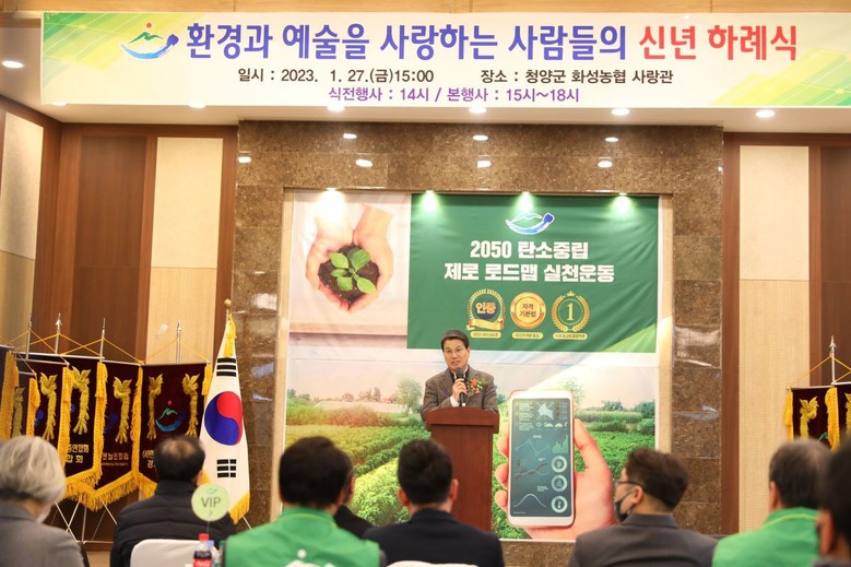 김돈곤 청양군수는 전국 각지에서 모인 환경관리사 들이 새해를 맞아 충남 제일의 청정지역 이곳 청양에서 신년하례식을 개최됨에 진심으로 축하한다는 환영사와 함께 청양의 환경관리사 김용구,강성구,김애란에게 친환경의 실천과 지역사회에 기여한 공이 크므로 표창을 수여하였다.