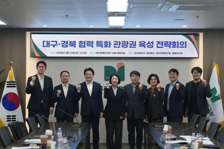 [대구 세계타임즈=한윤석 기자] 대구광역시와 경상북도는 3월 27일(금) 오후 2시, 대구정책연구원 대회의실에서 양 시·도 관광부서와 연구원이 참여한 가운데 ‘대구·경북 협력 특화 관광권 육성을 위한 전략회의’를 개최했다.
