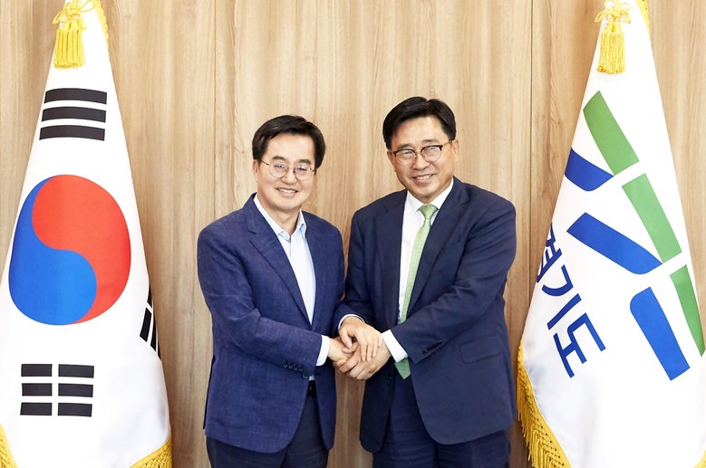 [세계타임즈 = 이현진 기자] 한국농수산식품유통공사 김춘진 사장은 25일 김동연 경기도지사를 만나 K-푸드 수출확대 방안에 대해 논의하는 자리를 가졌다.