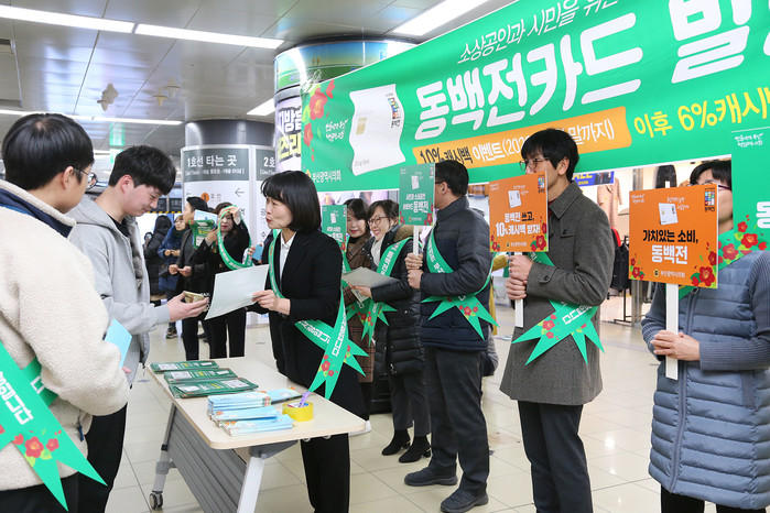 먼저, 시의회는 20일(월) 오전 11시 50분부터 서면역 지하상가에서 ‘동백전 발행 대시민 홍보 현장 캠페인’을 펼쳤다. 시의원들은 유동 인구가 많은 다중 집합장소를 직접 찾아 시민들과 만나 ‘동백전’ 발행 취지를 홍보하고 사용에 적극 동참해 줄 것을 호소했다.