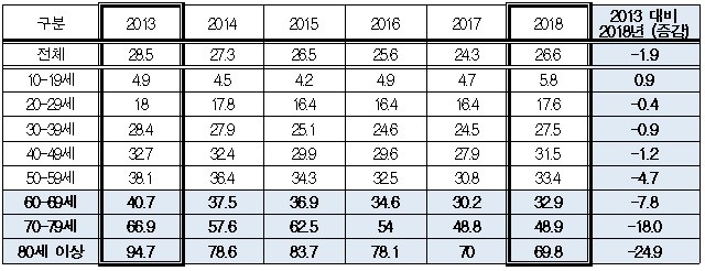 <표3> 연령집단별 자살률 [단위 : 인구 10만 명당 자살자 수]