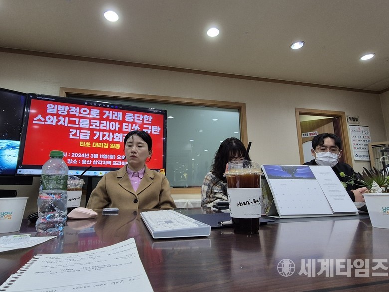 대리점주 A씨는 "티쏘라는 브랜드가 생소했을 때부터 홍보하고 소비자들에게 알리는데 기여했다. 갑자기 계약해지를 한다는 것 자체가 불합리하다. 스와치그룹코리아에서 2월 15일 계약해지를 통보하고 2월 29일까지 답변을 달라고 했는데, 제 인생을 걸기에 부족한 2주였다. 결국 싸인할 수 없었다. 본사, 담당자 등과 만나 이야기를 나누고 싶다"고 말했다.