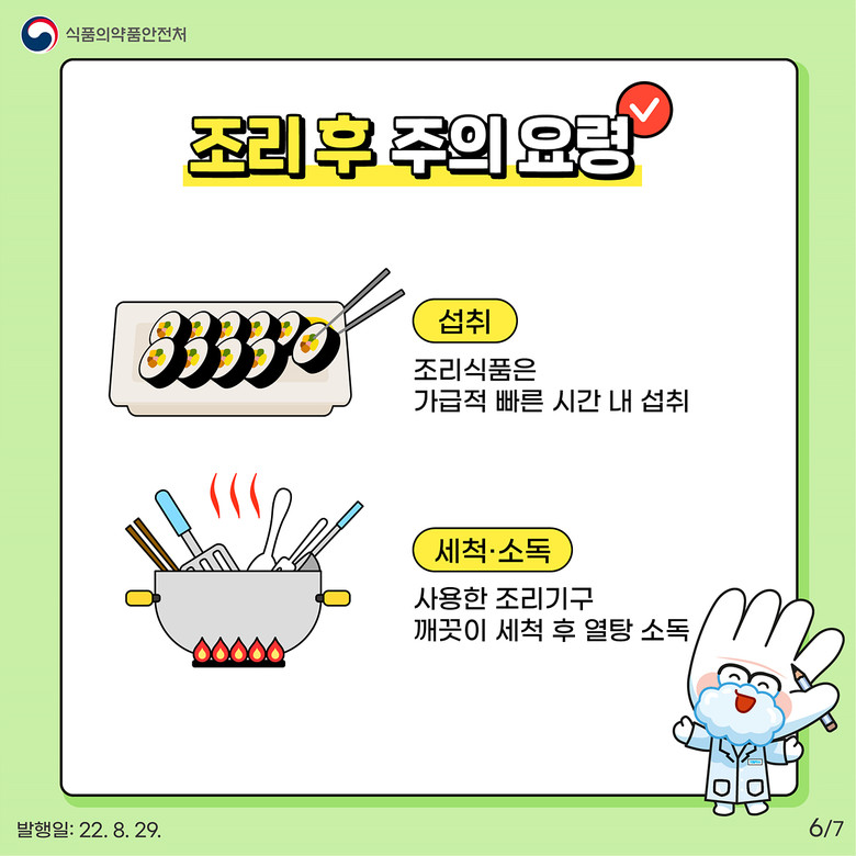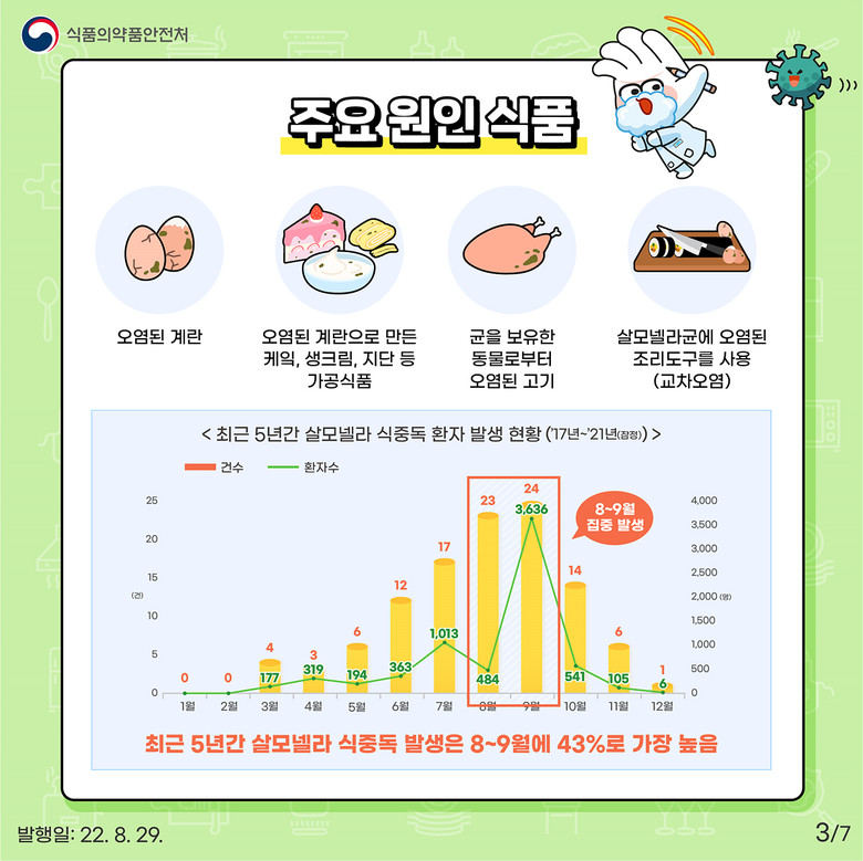 특히, 기온이 높은 여름철에 주로 증가하는 살모넬라 식중독 예방을 위해 달걀 등 식재료 취급·보관 관리 등 식중독 예방 수칙에 대한 현장 안내도 함께 진행한다.