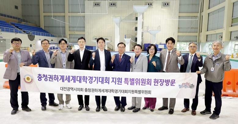 [대전 세계타임즈=이채봉 기자] 대전시의회 충청권 하계세계대학경기대회 지원 특별위원회(위원장 김진오)는 8일 2027 충청권 하계세계대학경기대회의 경영·다이빙 경기장으로 활용될 용운국제수영장을 방문해 시설 현황을 점검했다.