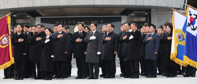 [세계타임즈 = 이채봉 기자] 우원식 국회의장이 1일 오전 서울국립현충원에서 현충탑을 참배한 뒤 국기에 대한 경례를 하고 있다. 2025.1.1