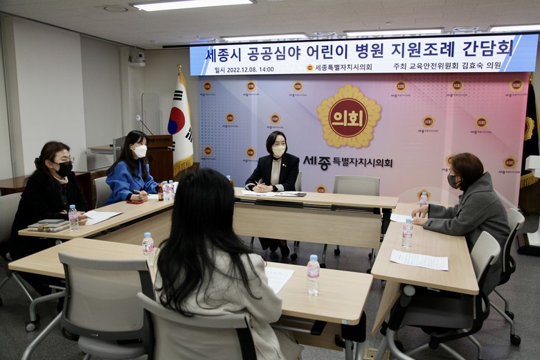 12일 세종시의회 김효숙 의원(나성동, 더불어민주당)에 따르면 세종시 공공 심야 어린이병원 지원 조례 발의를 준비하기 위해 지역 학부모 및 의료기관 관계자 등을 만나 의견을 수렴해왔다.