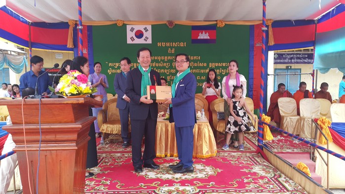 수여식은 캄보디아 프레이벵주((Prey Veng Province)에 있는 니크로엉 초등학교에 마련된 행사장에서 캄보디아 정부를 대표해 유크 버나(H.E. Youk Bunna) 행정부 차관 겸 왕립행정학교 총장이 국왕 명의의 훈장을 수여했다.