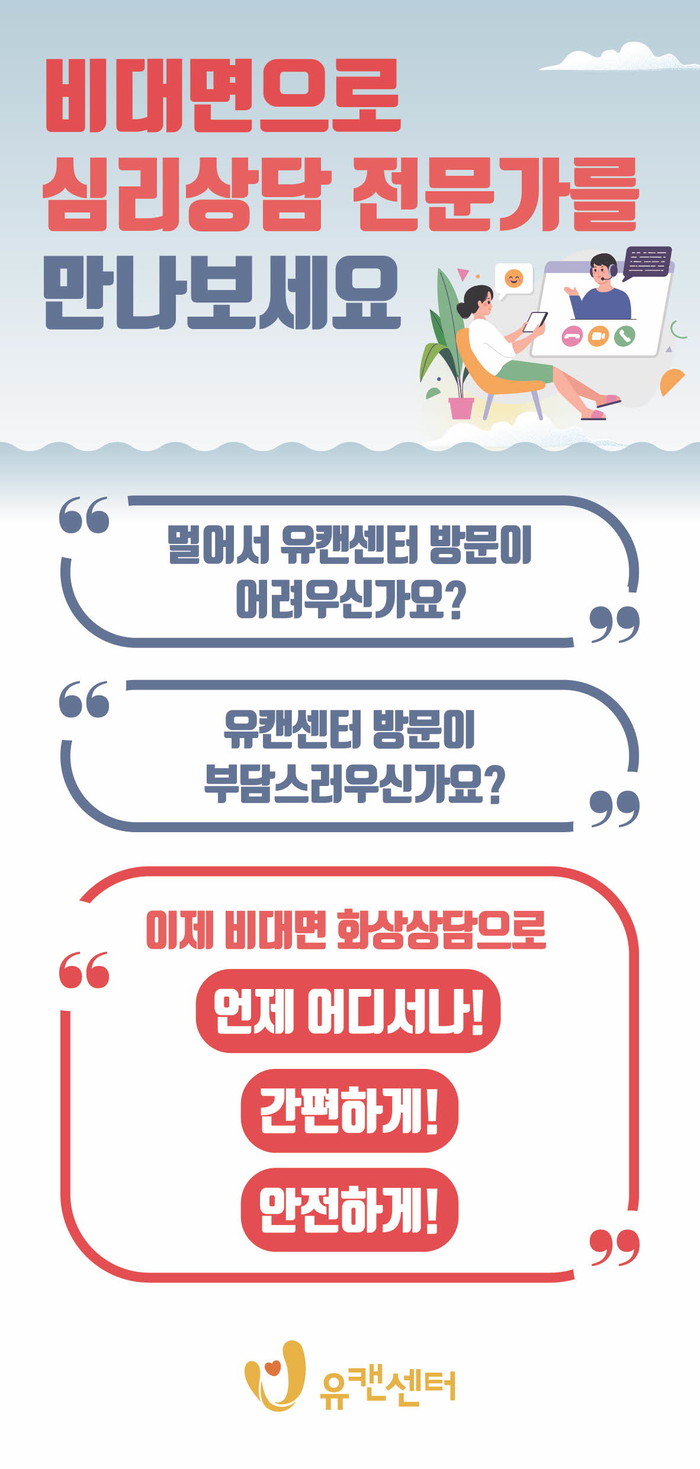 화상상담 이용 및 문의는 유캔센터(☏080-815-1190)를 통해 가능하다.