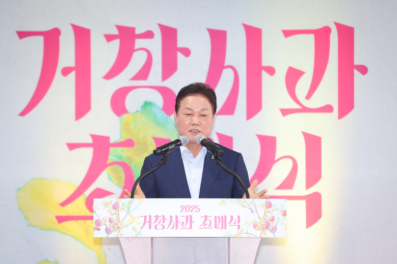 - 1만 5천 톤 생산 전망... 대형마트·온라인몰 등 전국 유통 예정 [세계타임즈=경남 최성룡 기자] 경상남도(도지사 박완수)는 22일 거창군 사과원예농협 청과물종합처리장에서 ‘2025년산 거창 홍로사과 초매식’을 열고 본격적인 출하를 알렸다.