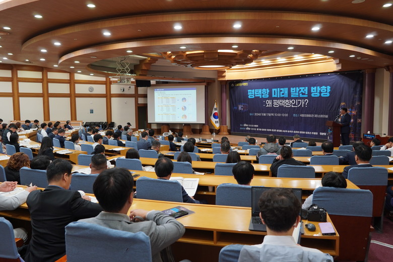 평택항의 국제 경쟁력 강화를 위한 신규 화물물동량 유치 전략을 모색하는 한편 , 평택시의 산업 · 교통 인프라 확충을 통해 평택항과 지역이 연계발전을 이룰 방안을 도출하기 위해 마련된 이번 토론회는 각계를 아우르는 100 인의 참석자들의 열띤 참여 속에 17 일 ( 목 ) 오전 10 시 국회의원회관 제 1 소회의실에서 개최됐다 .