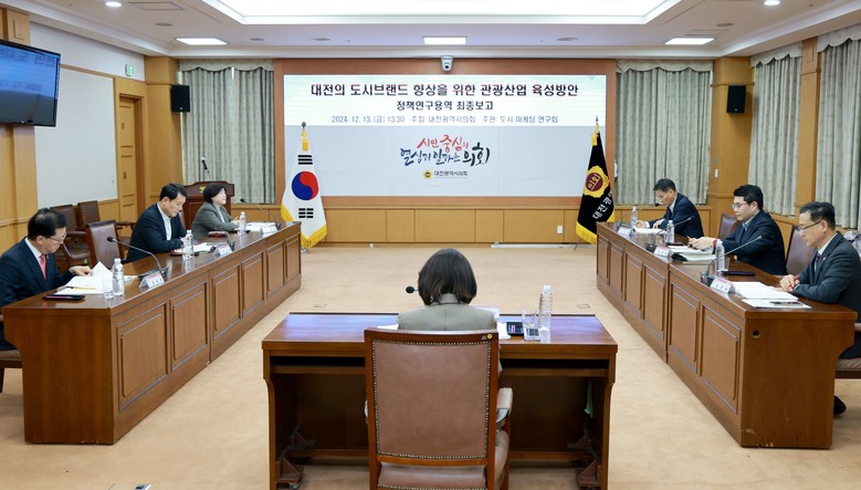 [대전 세계타임즈=이채봉 기자] 대전시의회 의원연구회인 ‘도시마케팅연구회’는 13일 오후 1시 30분 시의회 소통실에서 ‘대전의 도시브랜드 향상을 위한 관광산업 육성방안 연구용역 최종보고회’를 개최했다.