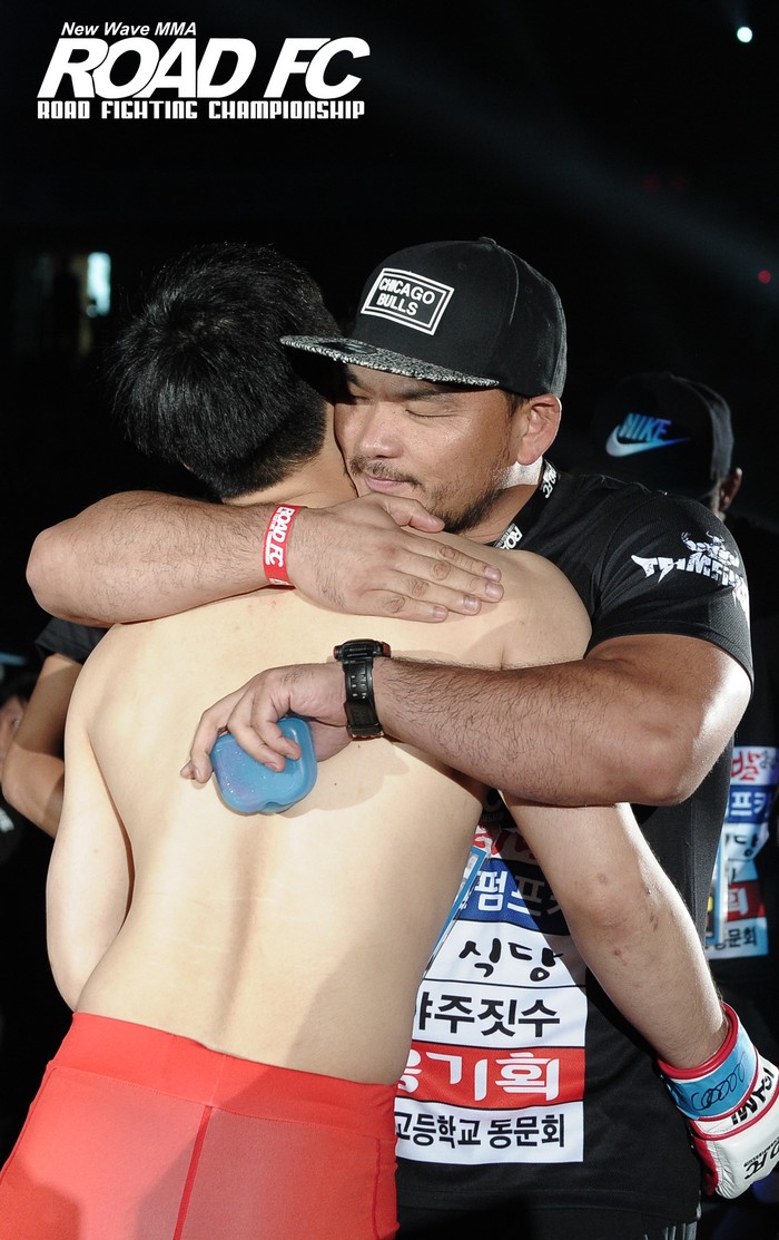 세컨드 대결을 하게 된 이 경기는 ‘탭 논란’이 불거진 한이문과 유재남의 대결이다. 한이문을 지도하고 있는 박준오 관장은 “지난 경기 영상을 보고, 논란의 여론도 있다보니까 찝찝한 게 사실이다. 이번 시합을 위해 많은 준비를 했다. 서로 재밌는 경기를 했으면 좋겠다. 레슬링, 주짓수, 킥복싱까지 확실히 이길 수 있게 준비를 더 단단히 하고 있다. 고향인 대전에서 처음 ROAD FC 대회가 열리는데 꼭 이겼으면 하는 바람이다”라고 말했다.