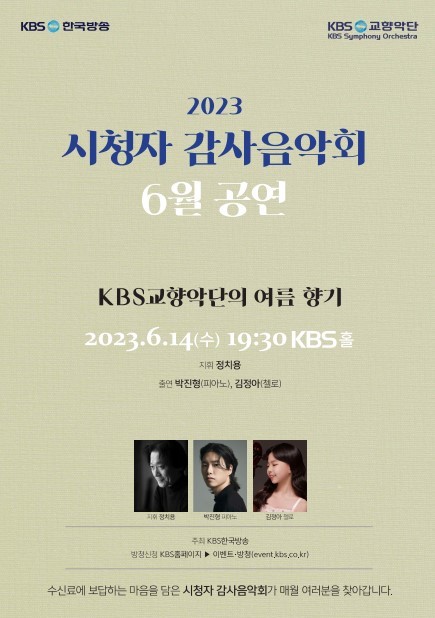 이어 “시청자 감사음악회는 매달 KBS교향악단, KBS관현악단, KBS국악관현악단의 공연으로 클래식, 팝, 재즈, 국악 등 다양한 프로그램의 문화예술 공연을 시청자에게 선물하고 있습니다. 초여름의 싱그러움을 채울 이번 6월 KBS교향악단의 시청자 감사음악회는 보다 특별한 선물이 될 것이다”라고 덧붙였다.
