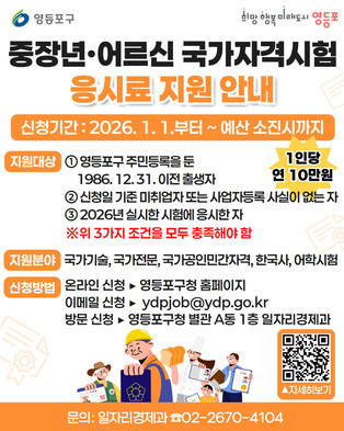 “청년부터 어르신까지 취업 지원한다” … 영등포구, 국가자격시험 응시료 지원