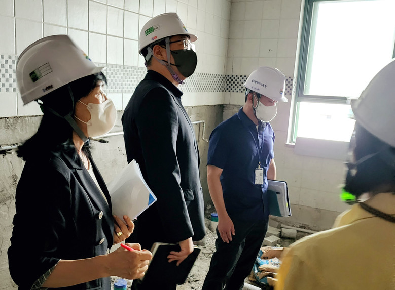 현장을 둘러본 천미경 부위원장과 권순용 의원은 “학교가 학생들이 가장 오랜 머무는 공간”이라며 시설환경의 중요성을 강조하고, “하자 등으로 인한 학생 불편과 추가 비용이 발생하지 않도록 사업추진에 만전을 기할 것”을 당부하였다.