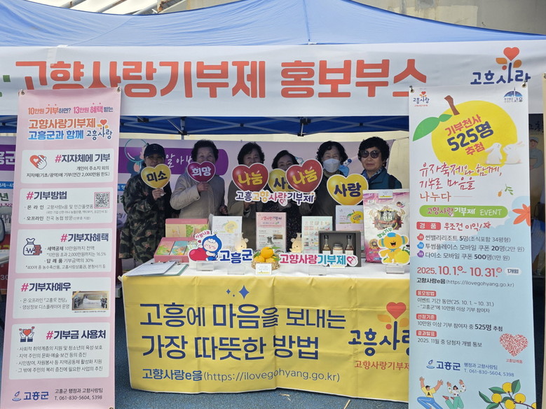 한편, 고흥군은 행사장에서 고향사랑기부제 홍보부스를 운영해 향우들에게 고향 발전을 위한 기부 참여를 안내하고, 고흥 특산물로 구성된 답례품을 소개해 큰 호응을 얻었다.