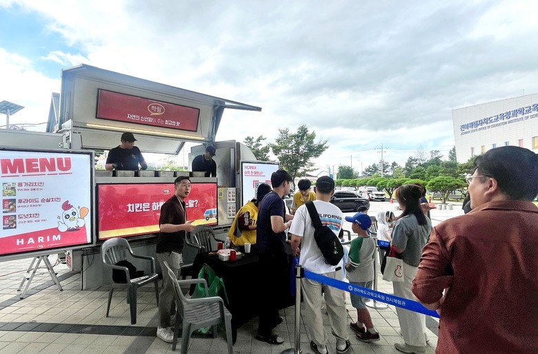 하림은 행사 당일 오전 10시부터 오후 4시까지 익산시 선화로에 위치한 전북특별자치도교육청 과학교육원 내 ‘놀이마당’에서 푸드트럭을 운영하며 참가자들에게 닭고기로 만든 용가리치킨, 후라이드 순살치킨 등 맛있는 간식을 무료로 제공했다.