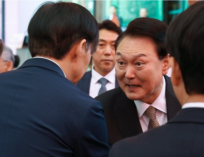 조 대표는 4·10 총선을 불과 38일 앞두고 조국혁신당을 창당해 정치에 뛰어들었고, 조국혁신당은 총선에서 12석을 거머쥐며 원내 3당(22대 국회기준) 지위를 확보했다.비례대표 의원으로 여의도 입성을 앞둔 조 대표는 최근 윤 대통령의 부인 김건희 여사 수사와 해병대 채상병 사망 사건에 대한 특검 등을 주장하며 대통령 탄핵까지 공개적으로 거론하고 있다.윤 대통령과 조 대표의 대면은 서로 불편하고 어색하지 않았겠느냐는 추측도 정치권에서 제기된다.윤 대통령과 조 대표의 정식 회동이 이뤄질지에도 관심이 쏠린다.조 대표는 지난달 20일 페이스북을 통해 원내 제3당의 대표인 나는 언제, 어떤 형식이든 윤석열 대통령을 만날 수 있길 희망한다고 말했다.윤 대통령은 지난 9일 취임 2주년 기자회견에서 조 대표와 만날 의지가 있는가라는 질문에 어떤 정치인도 선을 긋거나 하지 않고 늘 열어놓겠다고 답했다.행사장에는 윤 대통령이 검찰총장으로 재직할 당시 법무부 장관이었던 더불어민주당 추미애 당선인도 참석했다.