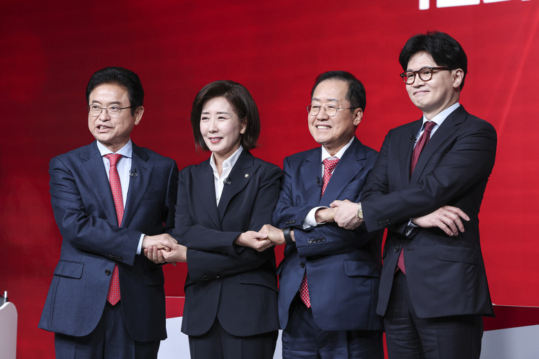 나경원 후보는 "한 후보가 내란 몰이 탄핵을 선동한 것 때문에 결국 이 지경을 만들었다고 생각한다"며 "(한 후보가 당 대표 당시) '대통령이 내란을 자백했다'면서 사실 내란 몰이 탄핵을 선동하는데 가장 앞장서서 굉장히 안타깝다"고 지적했다.이철우 후보도 "한 후보가 지금 그런 말을 할 자격이 있나. 지금 우리 당 (대선 경선) 후보로 나왔다는 것 자체가 잘못된 것 아니냐"라며 "대통령이 무슨 내란이냐"라고 반박했다.한 후보를 겨냥한 견제는 이후에도 지속됐다.나 후보는 "그동안 좋은 자리를 많이 했는데 보수통합을 위해 대통령 후보는 그만두고 헌신하면 어떻겠느냐"고 말했다.한 후보는 "나 후보의 정치를 응원하겠다"면서 "나도 국민을 위해 이 상황에서 내가 꼭 필요한 위치에 있다고 생각한다. 최선을 다하겠다"고 응수했다.두 후보는 과거 당 대표 경선 당시에도 경쟁자로 만나 대립각을 세운 바 있다.