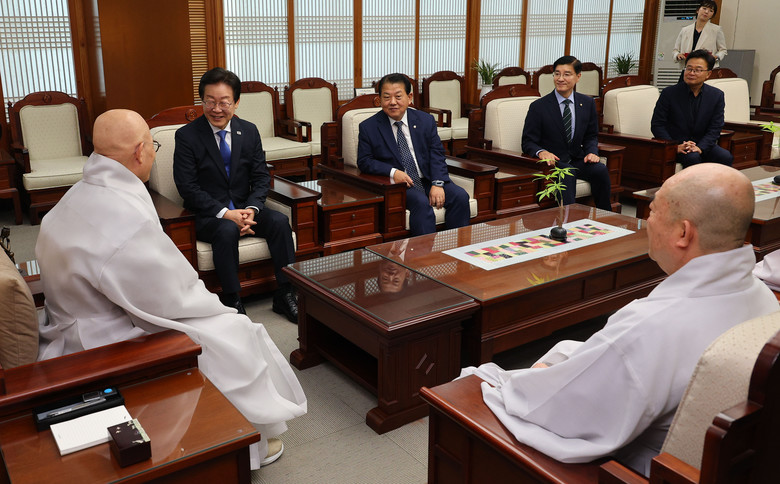 진우스님 예방한 이재명 대표