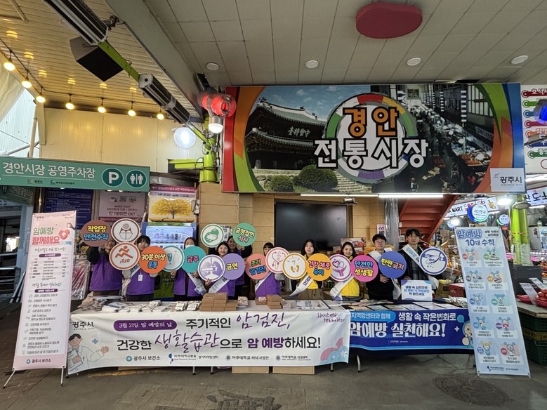 이날 행사에서는 경안시장 상인과 방문객을 대상으로 ▲암 예방 10대 수칙 홍보 ▲국가암검진 대상자 확인 및 수검 독려 ▲금연·절주·신체활동 등 건강생활 실천 교육이 진행됐다. 특히, 암은 식습관 개선과 금연, 절주 등 생활 습관 개선을 통해 예방할 수 있다는 점과 함께 정기적인 건강검진이 효과적인 예방법임을 안내했다.