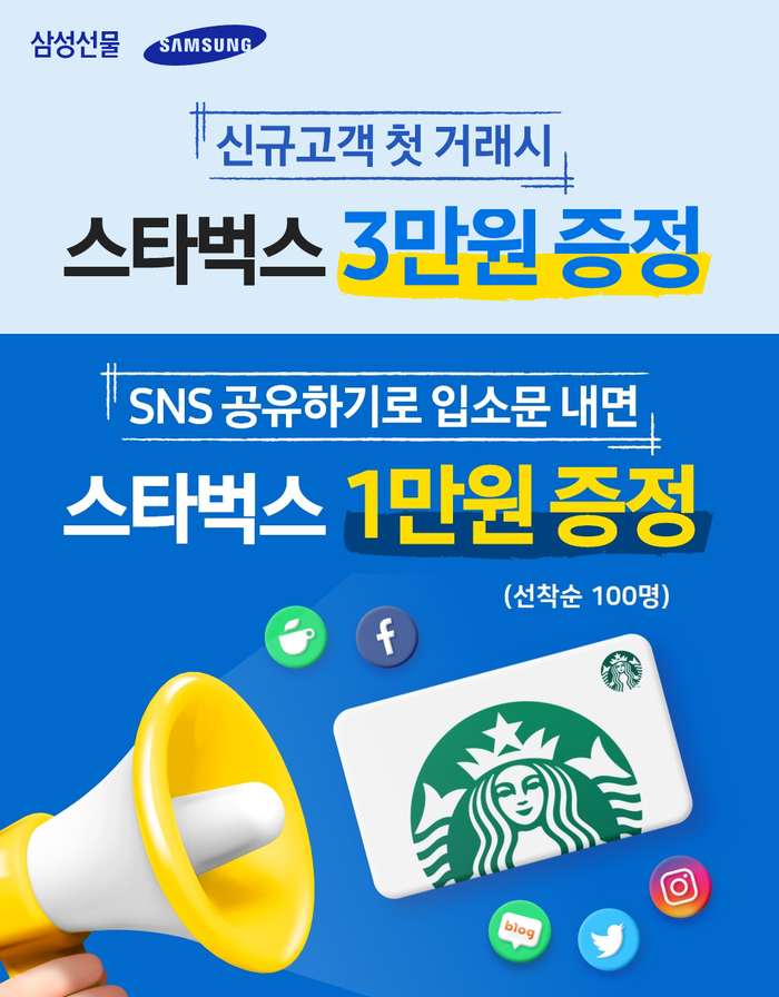 또한 해외선물 신규고객 첫 거래시 스타벅스 기프티콘 3만원을 지급하며, SNS(블로그, 인스타그램, 페이스북 등)에 이벤트 링크를 공유하고 인증하면 선착순 100명에게 스타벅스 기프티콘 1만원을 지급하는 이벤트도 함께 진행하고 있다.