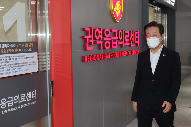 더불어민주당 이재명 대표가 4일 민주당 의료대란대책특위와 함께 서울 성북구 고려대학교 안암병원을 방문, 추석명절 의료 대응 여력 등을 살핀 뒤 브리핑을 위해 이동하고 있다. 2024.9.4
