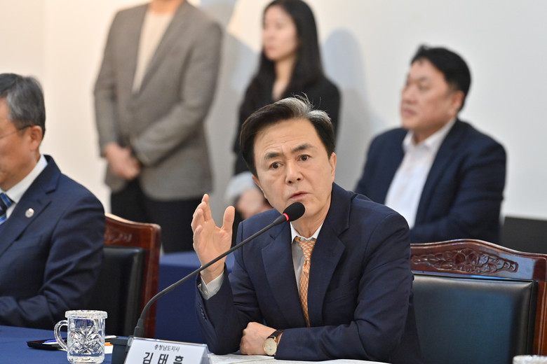 김태흠 지사는 10일 태안문화예술회관에서 성일종 국회의원, 이정석 국방과학연구소 부소장, 대한항공·LIG넥스원·한국항공우주산업(KAI)·한화에어로스페이스 등 4개 참여 기업 관계자가 참석한 가운데 미래항공 산업 육성 및 투자 촉진을 위한 업무협약을 체결했다